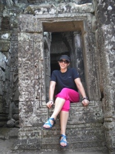On Sunday morning after breakfast, we took a tuktuk (our butts were a little sore from biking) to see Angkor Wat. Having saved the best for last, we were not disappointed. They say its magnificence rivals that of Herod’s temple, and having been to the Old City in Jerusalem, it was easy to see the comparison except that this place has remained nearly intact since the 12th century. We climbed up level by level, through carved hallways and ornate doorways, adorned with flowers, war scenes, mythical beings, dancers and Buddhas. From the third level, you could look out on the surrounding jungle and imagine the grandeur of arriving here thousands of years ago, a giant masterpiece rising between the trees.