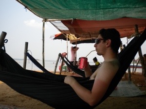 Ready for a break, our tuktuk took us to West Baray, once a reservoir for Angkor, and today a lake, where locals go to swim, boat and fish. We rented a spot on the beach (two hammocks and a mat under a shade tarp, clustered side by side on the beach) for $2. We spent the afternoon relaxing, swimming, and getting laughed at by locals (mostly Felix) for our very white bodies and use of sunscreen. It was a nice change of pace to be surrounded by locals and get a better sense of real Khmer life. Arriving back at the guesthouse in our bathing suits, the obvious next step was to go to the pool, which we thoroughly enjoyed.