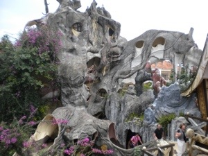 On the way back into town, we stopped at a scenic overlook into a beautiful green valley, and at an old US Army Airbase, where we drove right onto the old runway. We said goodbye to our riders, stopped for lunch at another veggie place ($8), and went to visit the Crazy House ($3 each). Designed by the daughter of the former President and head of Vietnam’s Communist Party, who studied architecture in France, this complex of 3-story houses is really crazy to see. It’s a cross between a maze and a haunted house, full of twisty staircases, small passageways you almost crawl through, and tightrope-esque walkways. It’s a lot of plaster and paint, and looks like it came right out of a Johnny Depp movie. The name says it all. Oh, and it’s a functioning hotel, if you ever want an out of the ordinary place to stay (each room has a theme, like beehive or termite nest).
