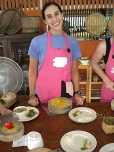 After a short digestion break (love those hammocks), we got to work on the curry paste. With a mortar and pestle, we ground up spices, herbs and chillies for 20 minutes until we finally had our curry pastes: Jordan made a green curry while Felix made his favorite Massaman. Who knew making curry was this labor intensive? Tired from the grind, we rewarded ourselves with dessert, but first, we had to make it. Jordan went with Mango Sticky Rice which we set aside for the end of the meal. Felix made Fried Bananas, which looked so good we gobbled them up right away. Recharged, we got back to work on the curry, and as soon as it was ready we made the soups: Jordan made a Coconut Milk Soup, which came out surprisingly good, while Felix’s Tom Yum (a clear broth soup) was less exciting. Finally, we sat down to a nice late lunch and relaxed while stuffing our faces. Jordan’s Green Curry didn’t come out as good as she had hoped, but she’ll definitely try again at home. Felix was very proud of his Massaman curry and cleaned his plate. He hopes some of you will come over to enjoy it with him since Jordan is not a fan. The Mango Sticky Rice was a great finish to a wonderful ongoing meal.