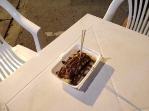 Every once in a while it feels good to forget where you are. Now, we are enjoying Asia a lot, but we do miss home sometimes. So we spent Wednesday at the mall! Breakfast was a short stop at the disappointing Bagel House ($4 for two coffees and an omelet) after which, we flagged down a songthaw to take us to Central World Airport Plaza ($2). We explored the shops, shared an almond croissant at Starbucks and had to try the Green Tea Red Bean Frappaccino ($7) that Felix had spotted weeks earlier, watched Iron Man 3 at the cinema,had sushi dinner ($9) and Auntie Anne’s pizza pretzel ($2.50) for dessert. It felt like we could have been anywhere all day, until we emerged at closing time and hopped another songthaw back to our hotel($1.30).