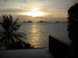 Just as we went to sleep at about 11pm, the train stopped. For 6 hours! We sat on the tracks somewhere in the middle of nowhere while the a/c continued to blast and freeze us. It felt like we were trying to sleep in a meat locker. This was Jordan’s hell. Finally, around 5am (an hour after we were supposed to have arrived), the train began to move. We pulled into Surat Thani station at around 10am where the local bus rep told us that although we had missed the bus, he had arranged for a songthaw to take us to the main station. A bumpy half hour ride brought us to the Songserm office where we got into a minivan that dropped us off at the SeaTran office (turns out they switched us over to another operator). We waited for an hour, but luckily, the air conditioned waiting room served a decent coffee ($4 for two coffees and an almond croissant).