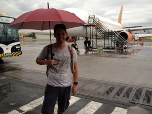 Determined to make the most of our time in Boracay, we managed to get up a little earlier than the vacation standard and walked 15 minutes across the island to the water activities beach area. We signed up on the spot for parasailing ($20 each – special rate for low-season visitors in the know), an activity we had been looking forward to for a while, and hopped right into a speedboat. Superman parachute above and blue seas below, we floated peacefully in the quite morning air and appreciated this gorgeous place, which we were about to leave. The island looked small below us, and the water was so clear we could see the sea floor. We were sad to come down, but the quick dip (Jordan says they only dip people they like) was refreshing, and before we knew it we were back on the beach. It was a short tricycle ride back to BBC ($1) for our usual breakfast followed by showers and packing. As we were finishing our prep for travel, we called down (oh, how Felix misses hearing: “Yes, Sir Felix” on the other end of the line) for our last banana peanut butter chocolate shake for the road. The staff and even the owner gave us a nice send off, and our buddy Franklin drove us back to the ferry terminal. We said goodbye and got on board. Fifteen minutes later, we were on the Island Star Express bus in Caticlan headed to the Kalibo airport. Boracay was the epitome of vacationland, and the prettiest and nicest water we’ve ever seen. Many people, guidebooks and websites had warned us that Boracay was very built up and touristy, yet the island remains beautiful in its own right, and all of those touristy things that others find distracting were just what we were looking for. After months of travel and so many distant and rustic places, all we wanted was some pampering, English, and good service which is exactly what we got here. Boracay is a place to which we would definitely return.
